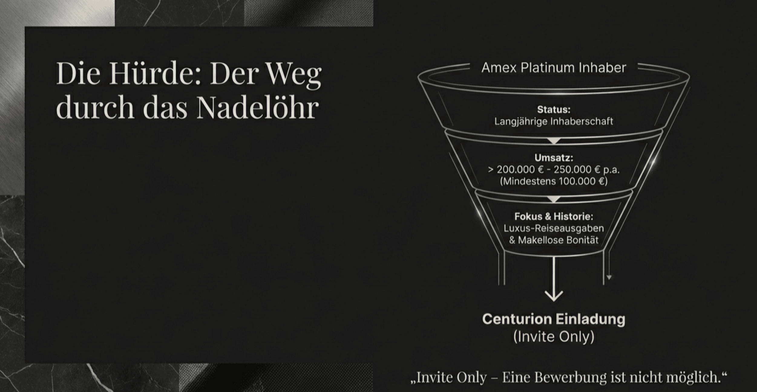 Da es keine offizielle Bewerbung gibt, ist der Weg zur Black Card oft ein Rätsel. Basierend auf Gesprächen mit Amex-Mitarbeitern und Erfahrungsberichten scheinen folgende Kriterien für eine Einladung entscheidend zu sein: