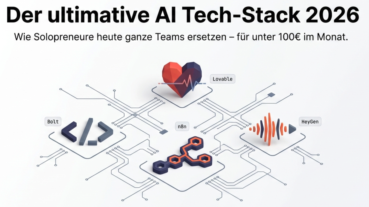 Früher brauchtest du für ein Startup: Einen Entwickler, einen Designer, einen Marketing-Manager und viel Kapital. Heute ersetzen diese Rollen spezialisierte KIs. Der Trick ist nicht, ein Tool zu nutzen, sondern sie wie Lego-Steine zu verbinden.