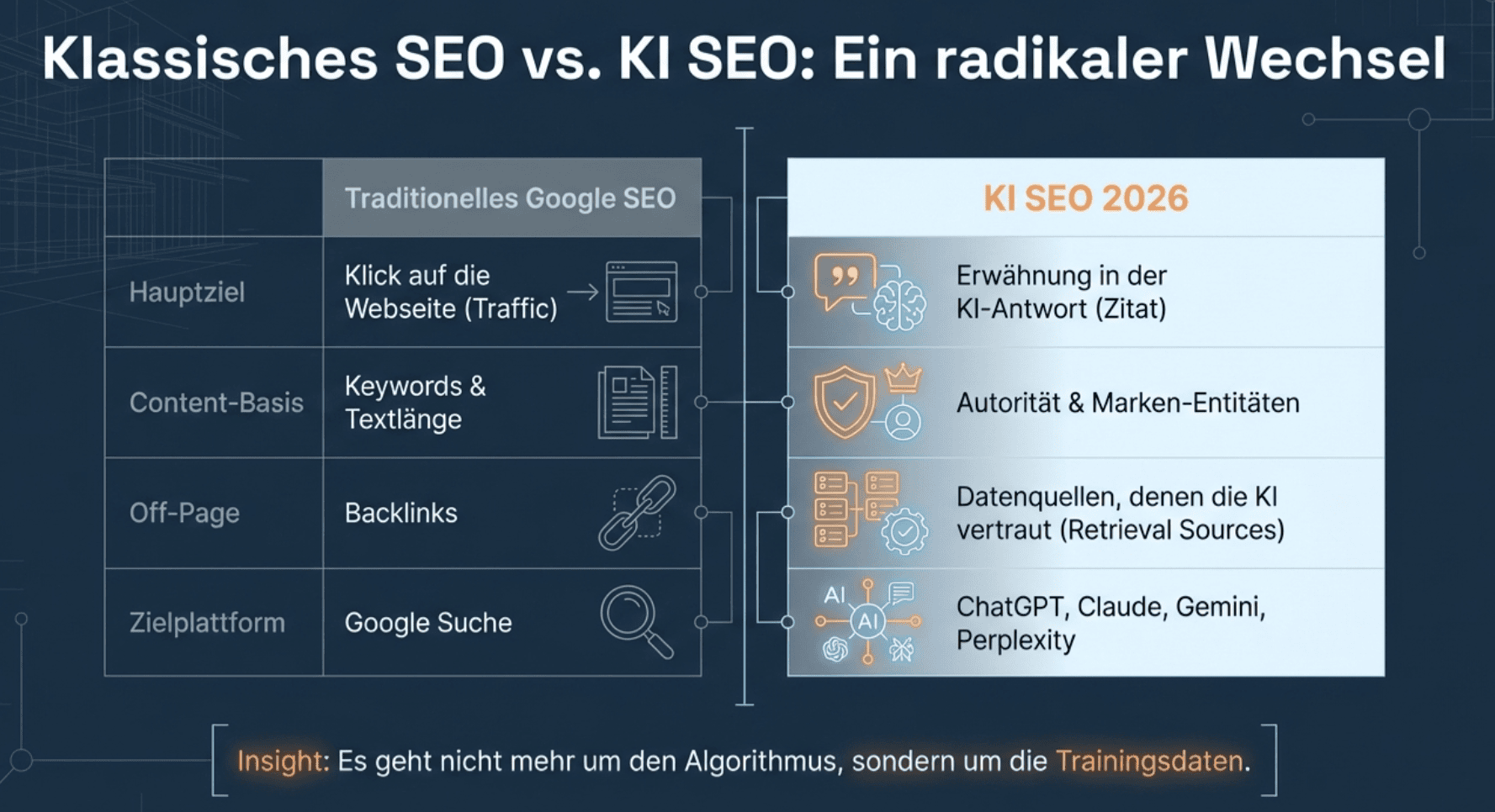 Bevor wir die Strategie besprechen, müssen wir verstehen, wie radikal sich das Spielfeld geändert hat. Es geht nicht mehr um den Google-Algorithmus, sondern um die Trainingsdaten von ChatGPT, Gemini und Claude.