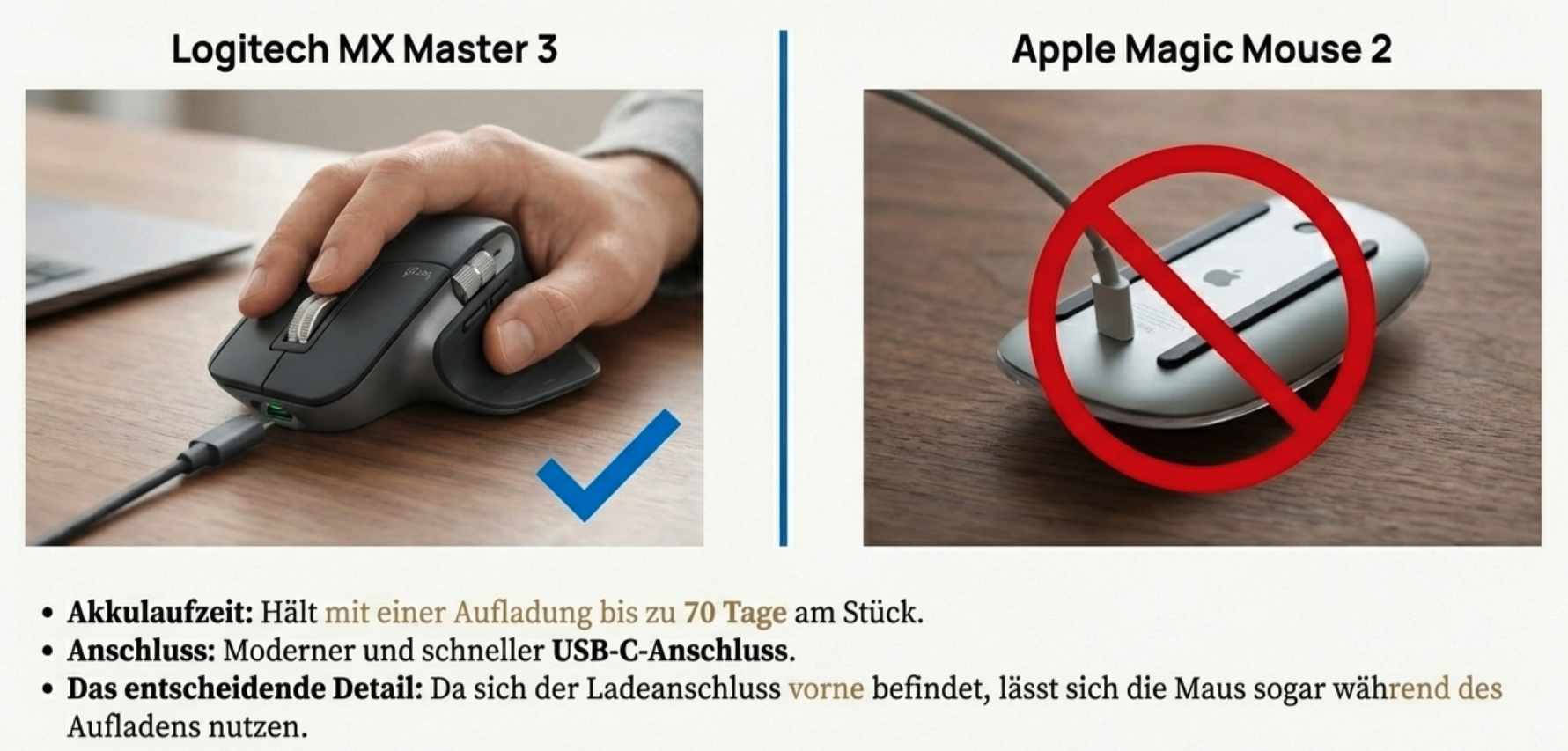 Kaufst du neu, würde ich direkt zur MX Master 3S greifen. Der Preisunterschied ist oft gering, und die Kombination aus leisem Arbeiten und präziserem Sensor macht sie zum aktuell besten Gesamtpaket für Professionals.