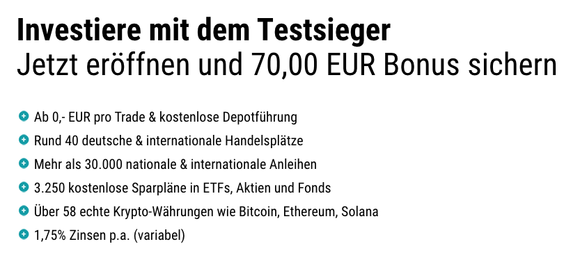 - ✅ Sparpläne: Ab 1 € monatlich in ca. 3.200 Wertpapiere