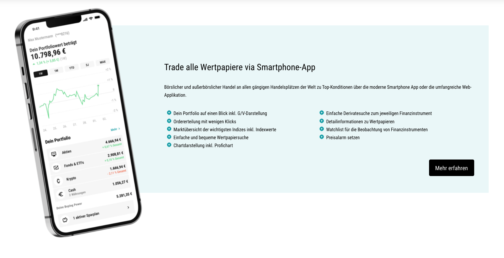 - ✅ Handelsangebot: Aktien, ETFs, Fonds, Anleihen, Derivate, Kryptowährungen